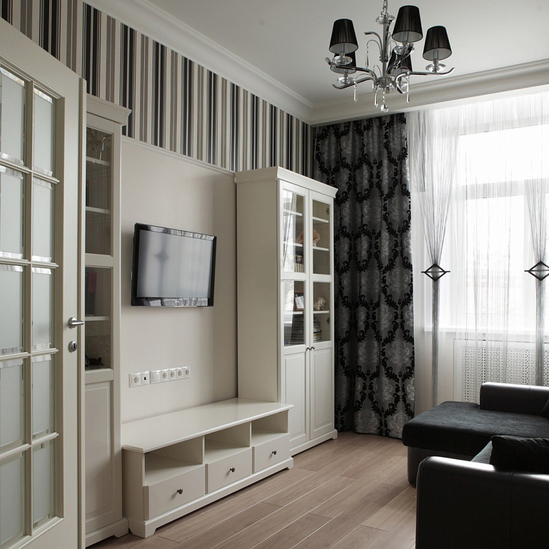 Фотогалерея: зал в чёрно-белом стиле — примеры оформления
