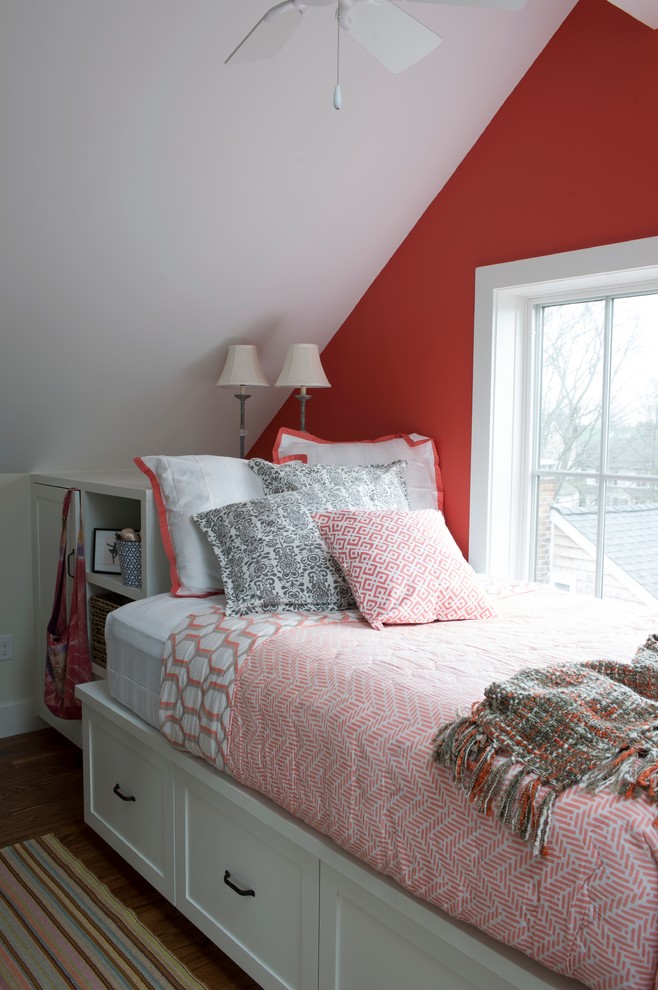 Более яркие цвета в сочетании с небольшим размером помещения, скорее всего, будут угнетать. Но если яркий цвет добавляется в виде акцента (картина, подушки, ковёр, покрывало), то остальная комната должна быть оформлена в спокойных и сдержанных тонах.
