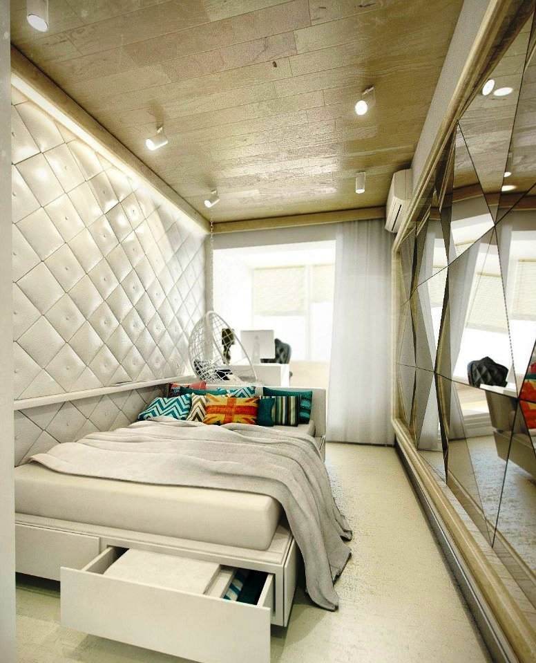 - возможность использования подиумов, мебели-трансформера, благодаря чему дизайн можно сделать лаконичным, но при этом вместить в комнату все необходимое;