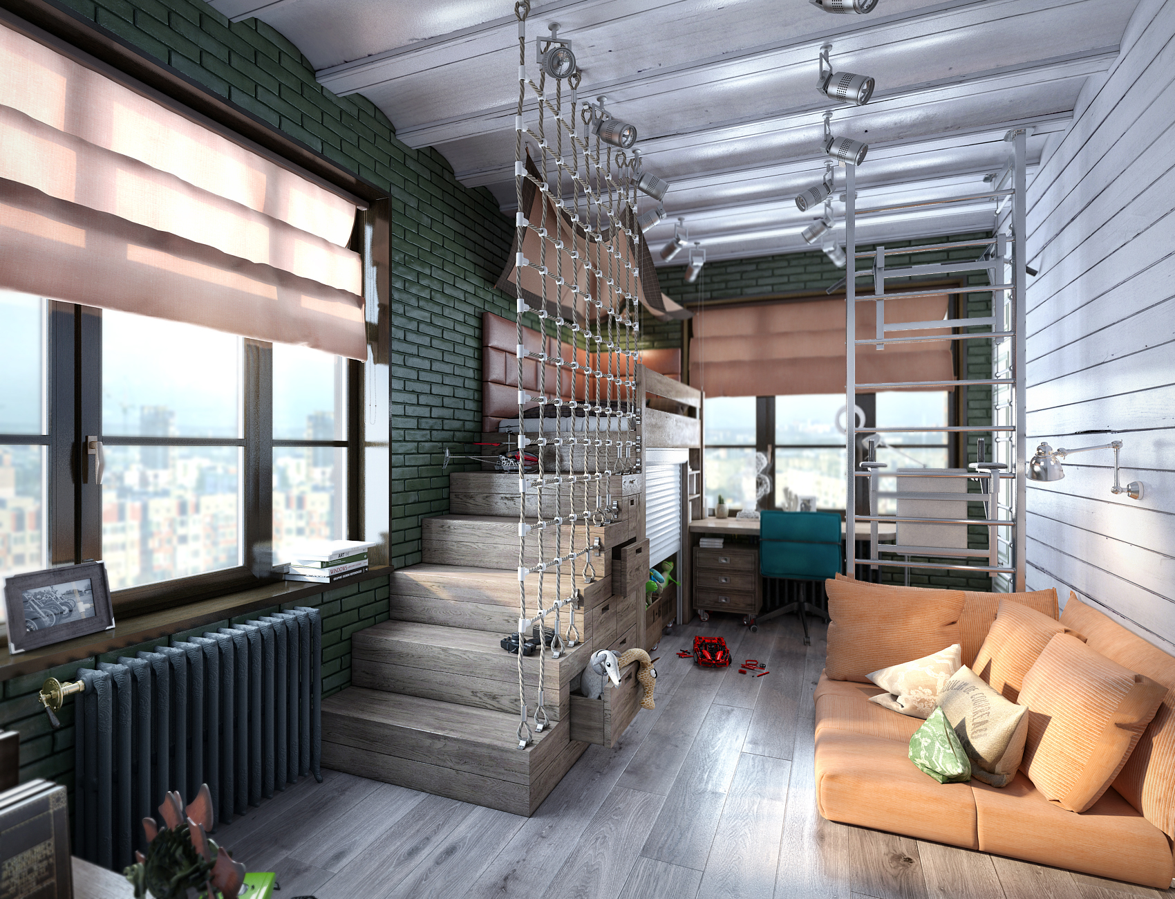 - Комната для подростков в стиле лофт