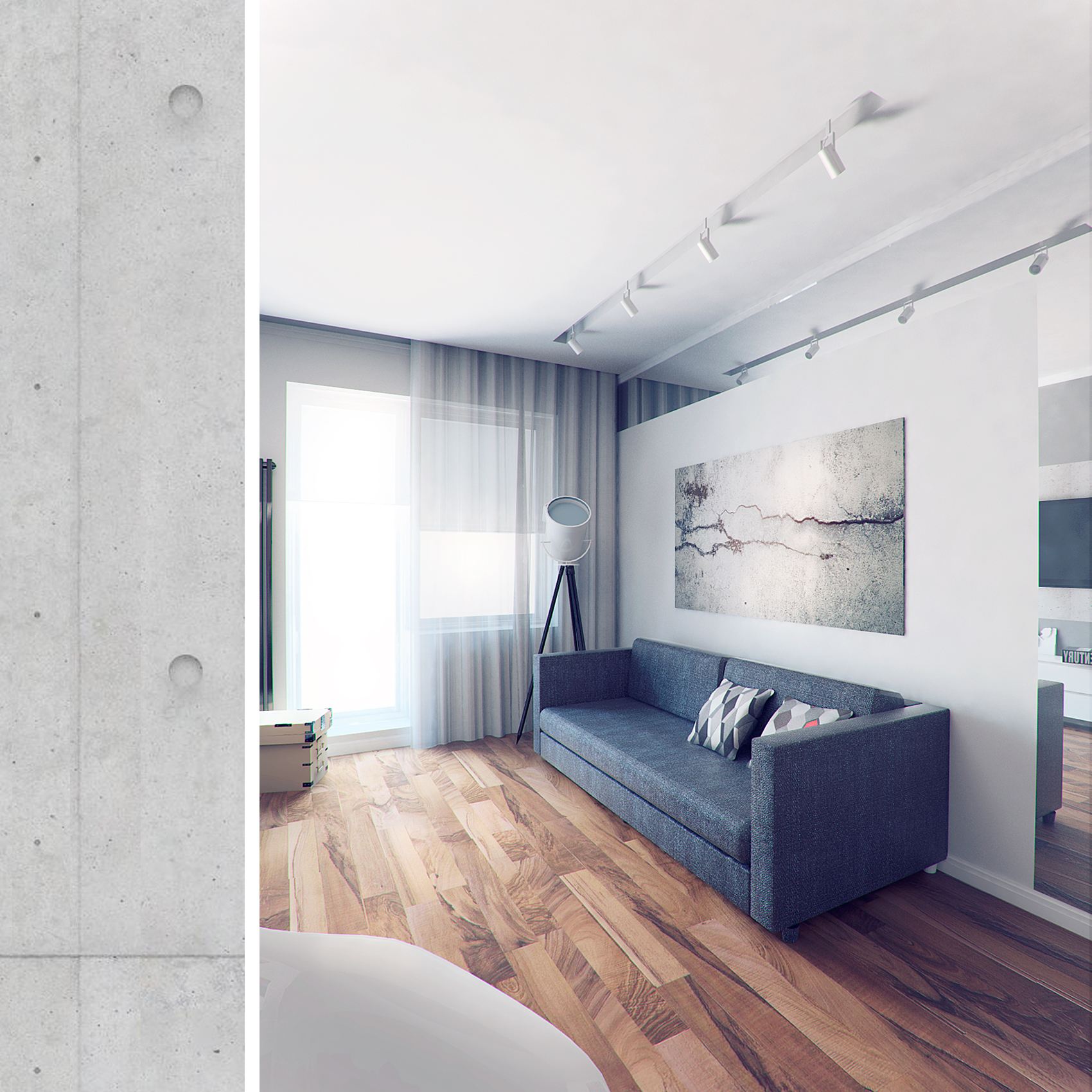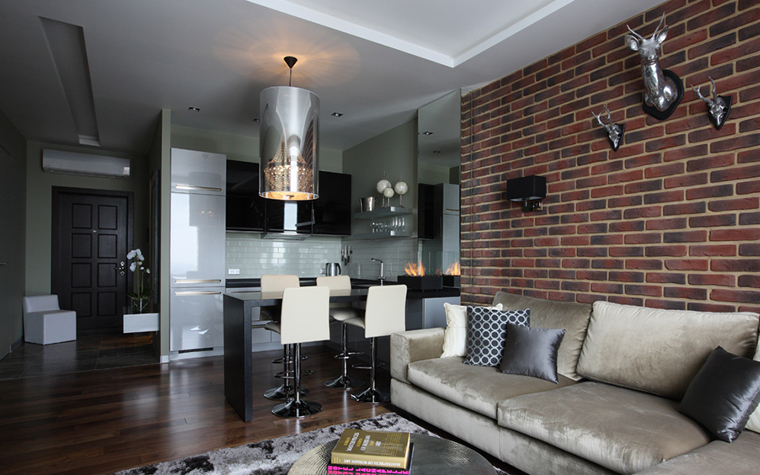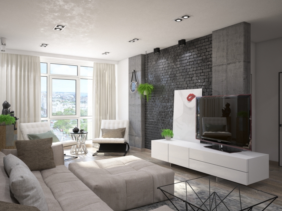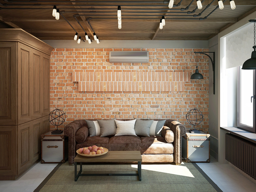 - Стилизация небольшой гостиной под лофт