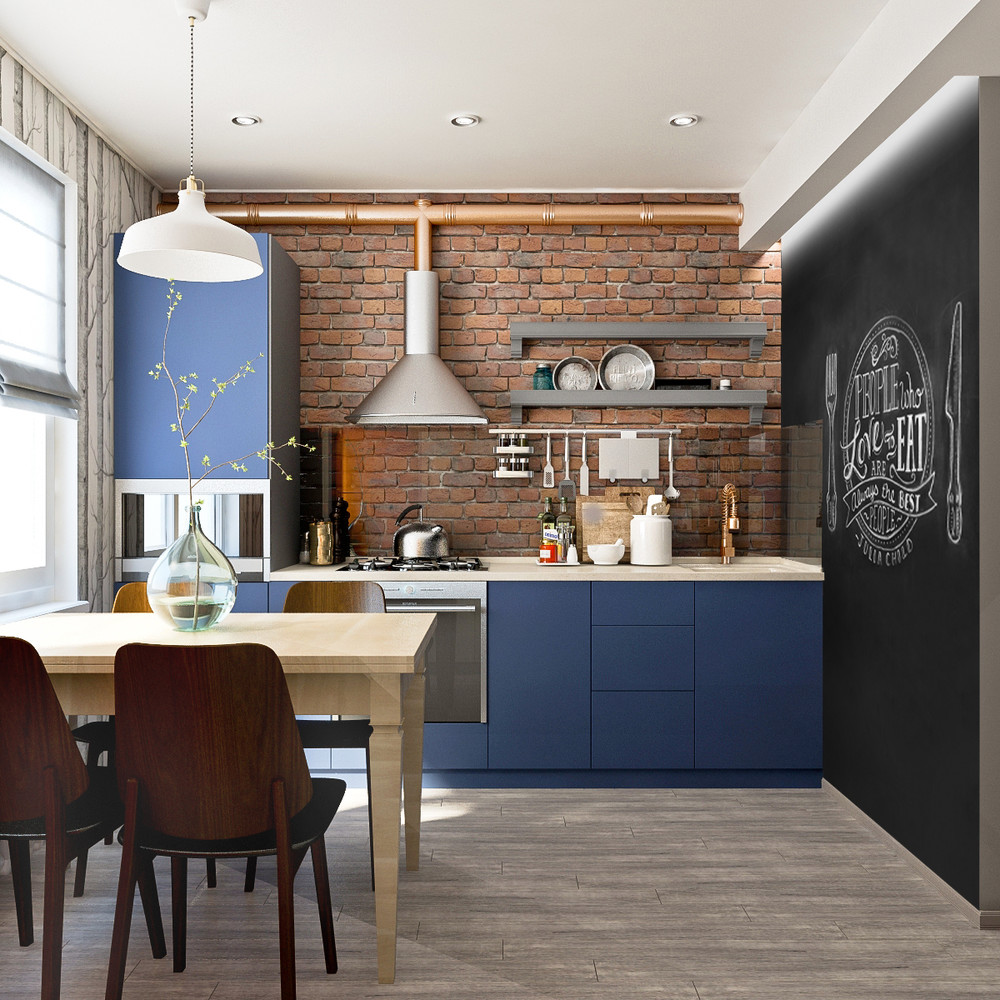 - Ещё одна небольшая кухня, оформленная в стиле неолофт