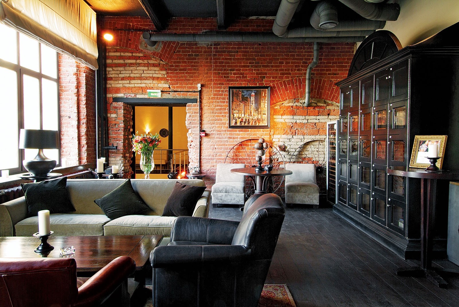 - Грубая кирпичная кладка — перед нами классический лофт в интерьере