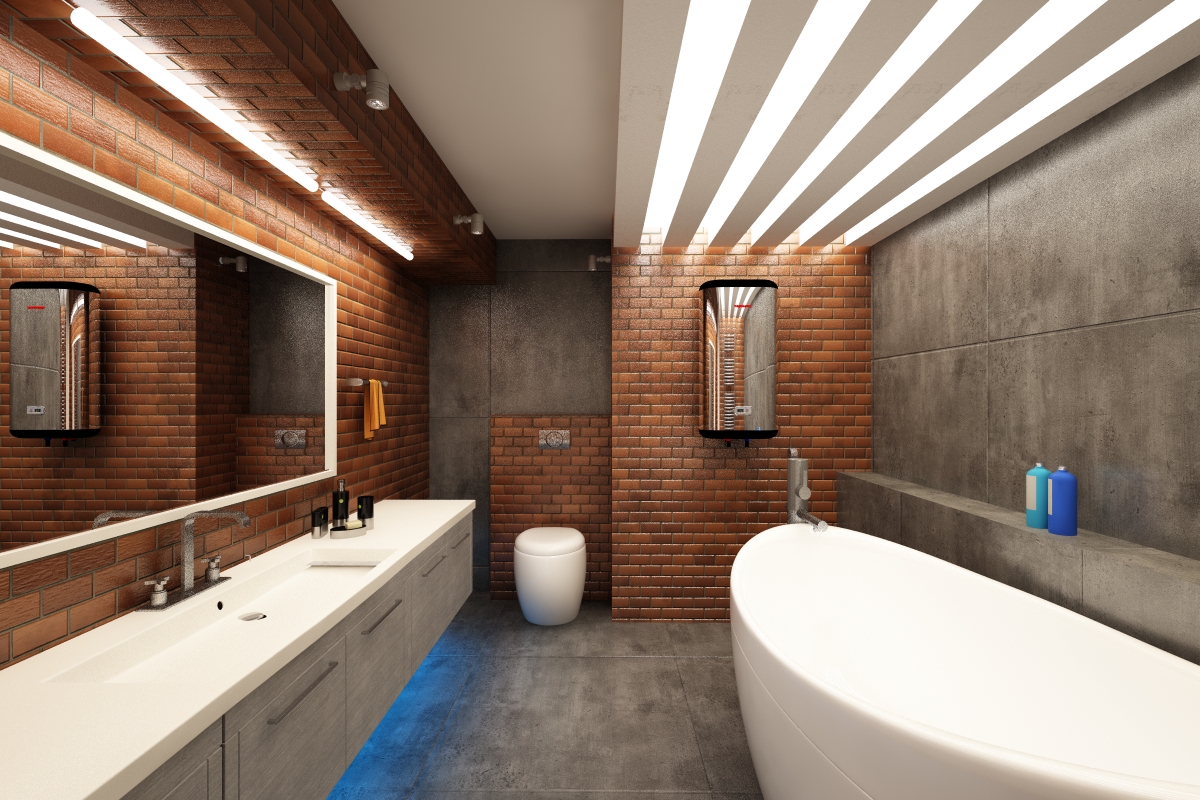 - Пример оформления ванной комнаты в стиле лофт