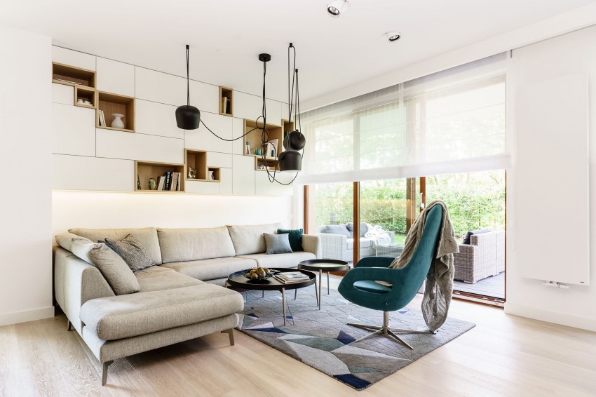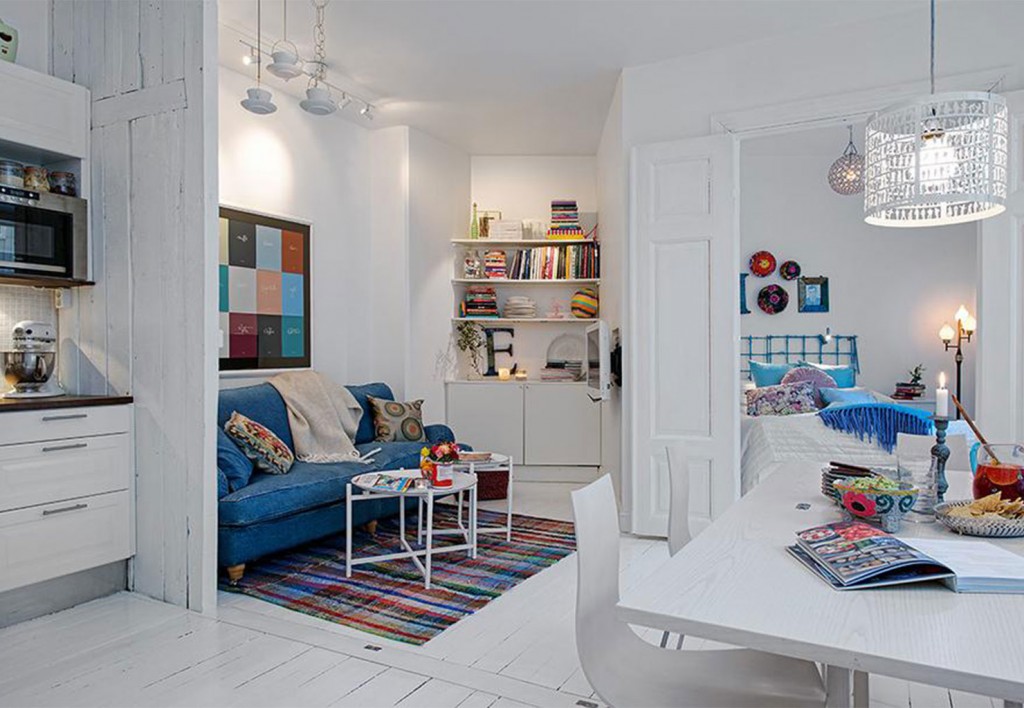 - Разноцветные элементы придают ощущение уюта строгому интерьеру в стиле шведского минимализма