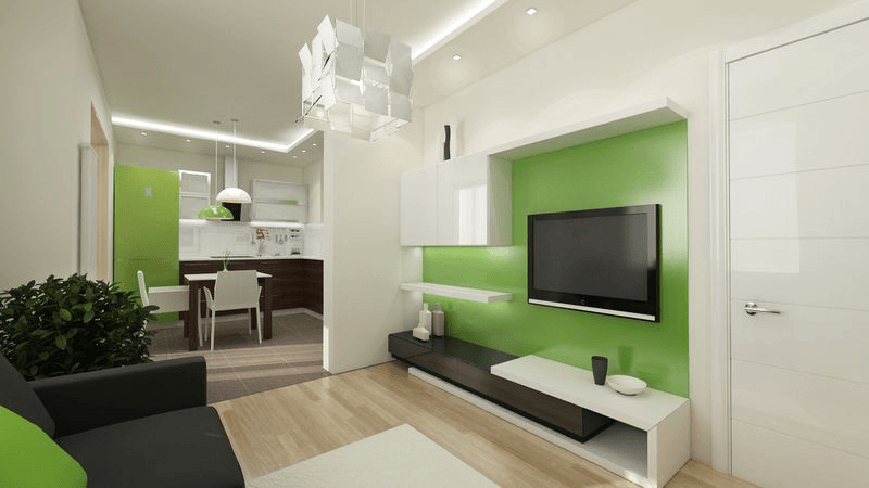 Этот стиль с его небольшим количеством аксессуаров и функциональной мебели хорошо подходит для катастрофически маленьких хрущёвок. Единственная проблема — отсутствие достаточной свободной площади. Поэтому зачастую оформление квартиры в стиле минимализм начинают с перепланировки. Для этого убирают не несущие перегородки, объединя при этом кухню с гостиной, которая может одновременно быть спальной хозяев. Возможно расширение площади за счёт лоджии, которую переоборудуют в комнату.