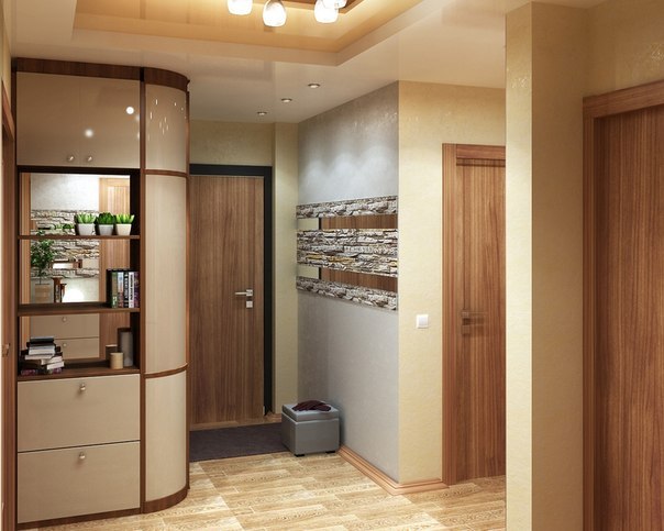 - Большое зеркало играет двойную роль — кроем оснвной визуально увеличивает объем прихожей