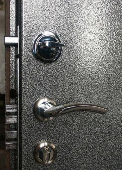 На финальном этапе, когда полотно высохло, или обшивка надежно закреплена, врезаются обратно элементы, и дверь ставится на петли. Не забудьте проверить ход двери – ничего ли не мешает снизу и в проеме.
