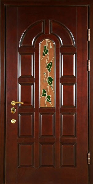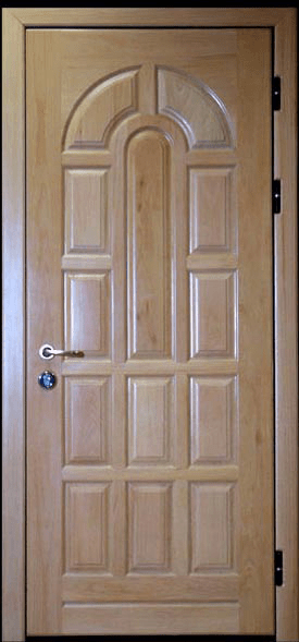 Порой отделка входных металлических дверей приобретает естественную древесную структуру при помощи шпонирования. Для отделки двери следует покупать специальный шпон с уже нанесенным клеевым составом на одну из его сторон. Тогда останется просто отклеить защитную бумагу и выполнить процедуру наподобие аппликации.