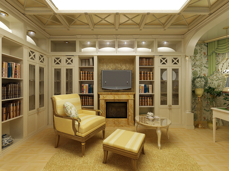 В гостиной может находиться несколько маленьких столиков — для чаепития, журнальный, туалетный. Следует предусмотреть небольшой посудный шкаф, в котором будет храниться гостевой сервиз. Если есть возможность, в гостиной можно разместить электрокамин. Он поможет создать уютную атмосферу.