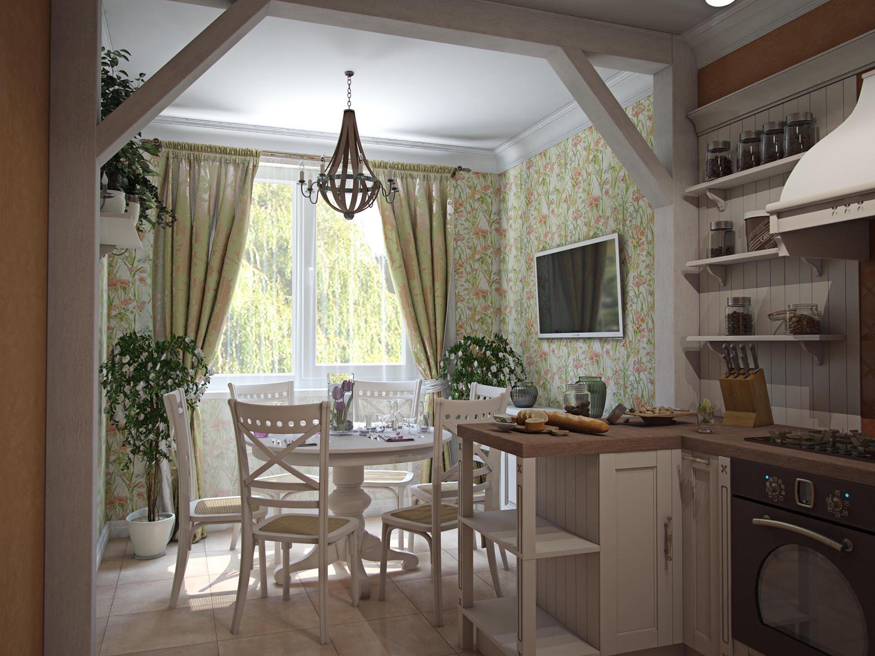 - Современная кухня в стиле прованс с круглым столом